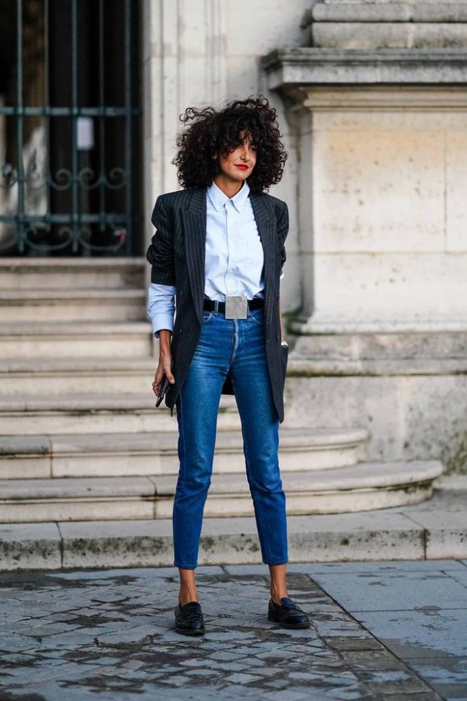 How to style them: Skinny jeans are the easiest to layer with oversized or longer pieces, since the slim leg balances out a bulkier top. A longline coat, an oversized knit, or a structured blazer all sit well over them. Ankle boots are a classic pairing. Trainers work in a casual context. If you want to keep things smart casual, stay away from very distressed finishes and stick to darker washes.